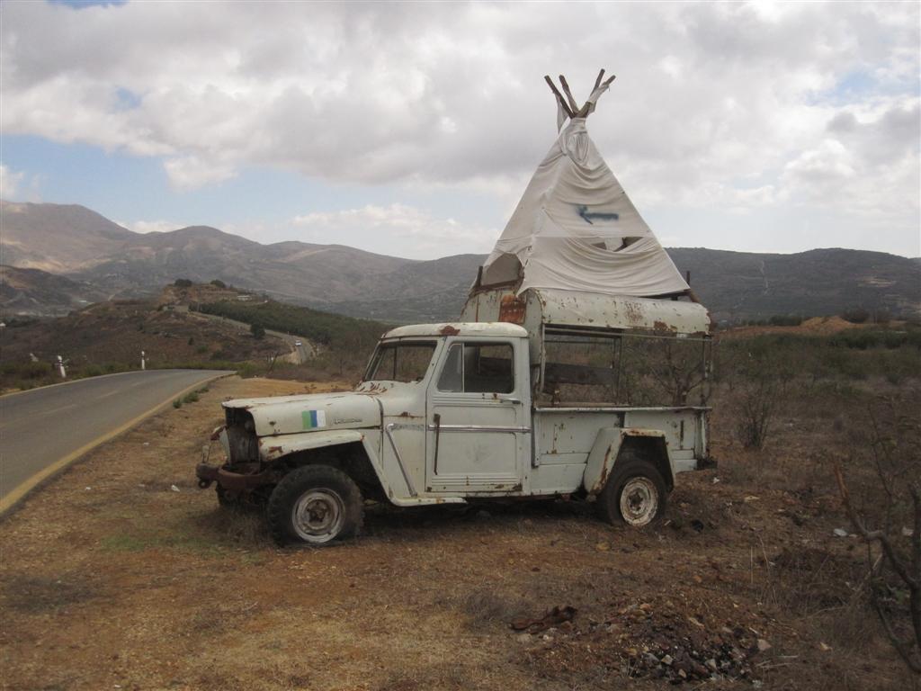 אני קצת קרוע מבפנים. אני גם חובב אספנות רכב וגם מדריך טיולים בארץ. שלושה אלמנטים נכנסים בוויליס טראק הספציפי הזה: 1. מדובר ברכב אספנות נוסטאלגי שיוצר בישראל ושירת בצה"ל ובגופי הבטחון האחרים. 2. הוא זנוח ונטוש מתפקד כשלט פרסומת וכגרוטאה ומצביע על מידה מסוימת של הידרדרות אידיאולוגית. 3. מסומן על הצד השמאלי של מכסה המנוע שלו, לא פחות מאשר שביל גולן...